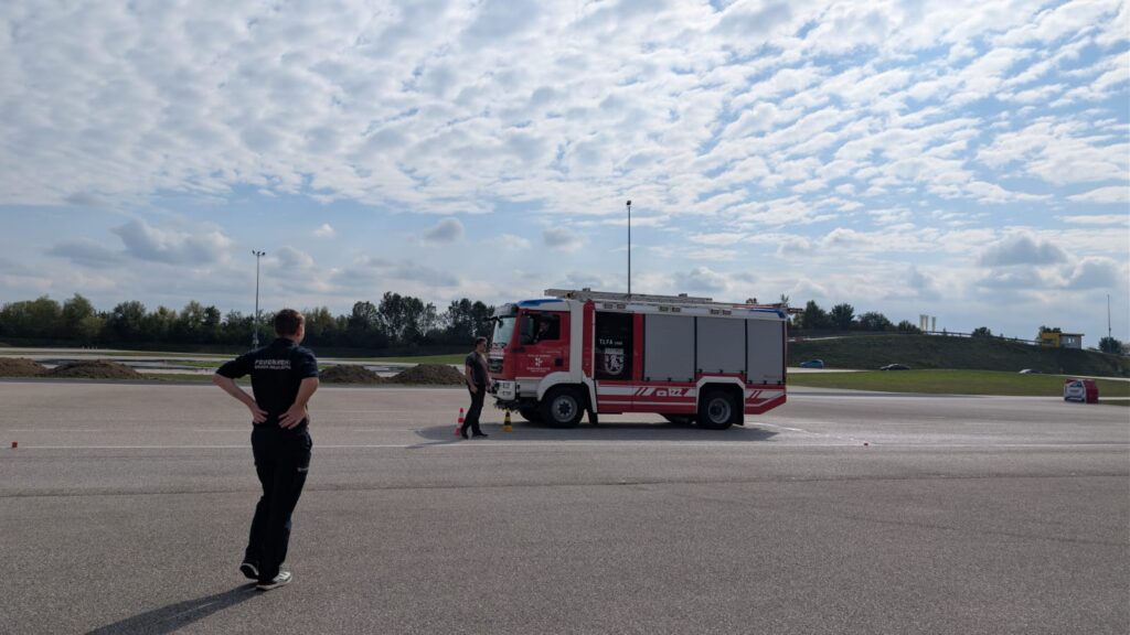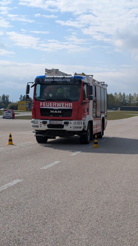 Auch unsere Feuerwehr nahm mit den Fahrzeugen TLF und KLF am Training teil. Auf einem abgesperrten Übungsareal konnten die Maschinisten unter realitätsnahen Bedingungen das Verhalten der Einsatzfahrzeuge in unterschiedlichen Situationen testen – etwa bei Ausweichmanövern, Notbremsungen oder Fahrten auf rutschigem Untergrund.