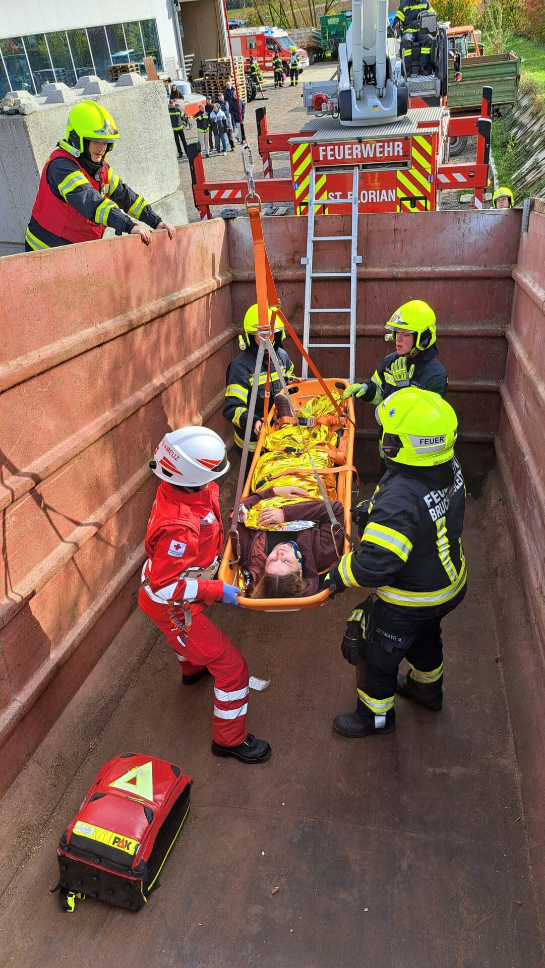 Auch das Rote Kreuz St. Florian nahm an der Übung teil, wodurch die Zusammenarbeit mit dem Rettungsdienst im Ernstfall beübt werden konnte.