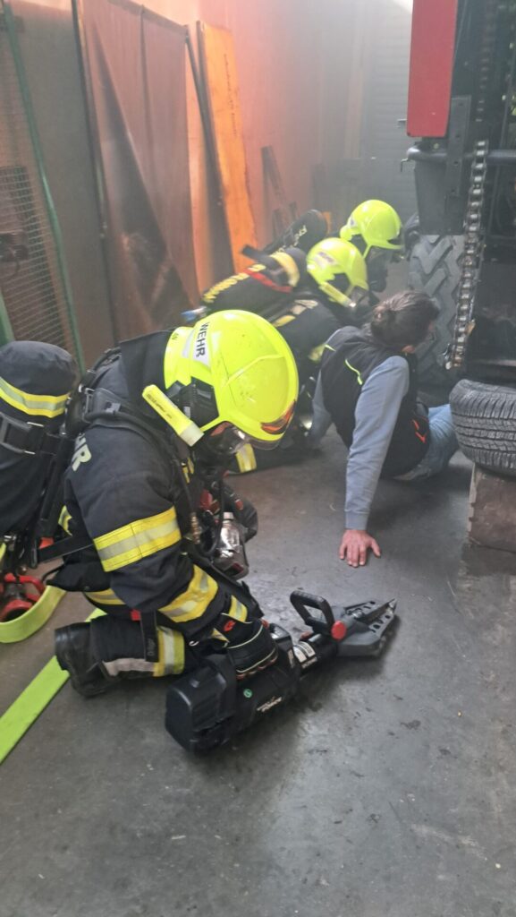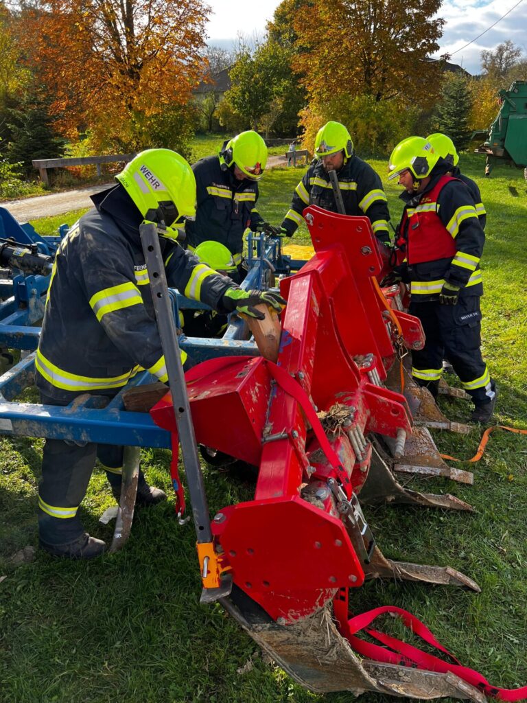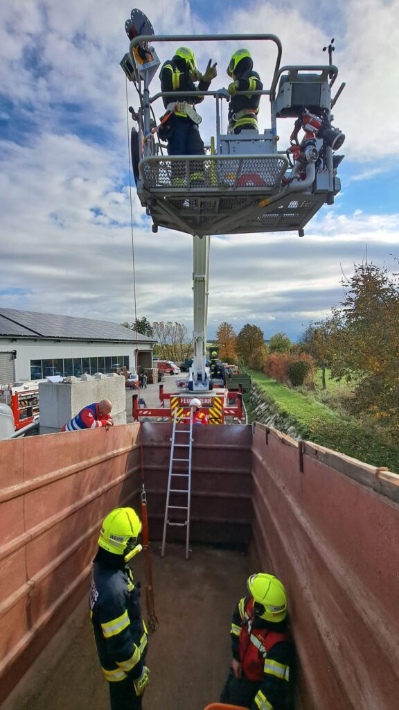 So mussten zwei Personen mithilfe technischer Einsatzmittel unter einem eingeklemmten Traktor hervorgeholt werden. Weiters steckten zwei weitere Verletzte in einer verrauchten Montagegrube fest. Mithilfe von Belüftung und technischem Feingefühl erfolgte jedoch auch hier eine erfolgreiche Rettung. Als eines der kniffeligeren Szenarien stellte sich das Retten einer bewusstlosen Person aus einer Schrottmulde heraus. Denn hier musste die verletzte Person mithilfe der Seilwinde der Teleskopmastbühne in einer Schleifkorbtrage aus der Mulde gehoben werden. Um das ganze abzurunden, war das vierte Szenario ein simulierter Küchenbrand im Übungsobjekt. Hier wurde eine Durchsuchung des Gebäudes und Rettung von vermissten Personen durch Atemschutztrupps der Feuerwehren vorgenommen. Des Weiteren wurde eine Wasserversorgung vom Feilbach mithilfe des Schlauchanhängers aufgebaut.