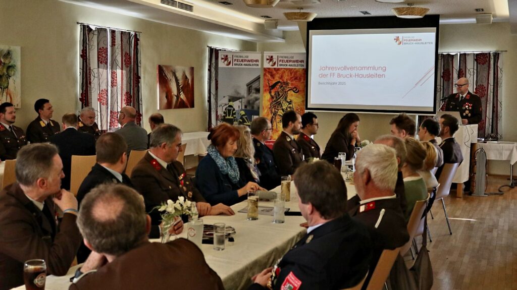 Am Sonntag, dem 11. Jänner 2026, fand die Jahresvollversammlung der Freiwilligen Feuerwehr Bruck-Hausleiten statt. Zahlreiche Kameradinnen und Kameraden, sowie Ehrengäste folgten der Einladung, um gemeinsam auf das Feuerwehrjahr 2025 zurückzublicken.