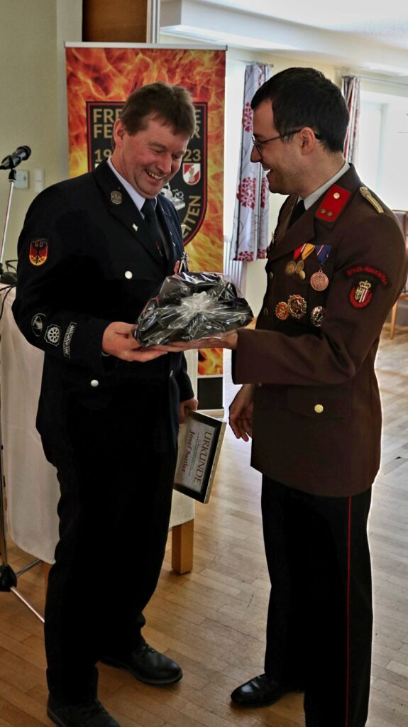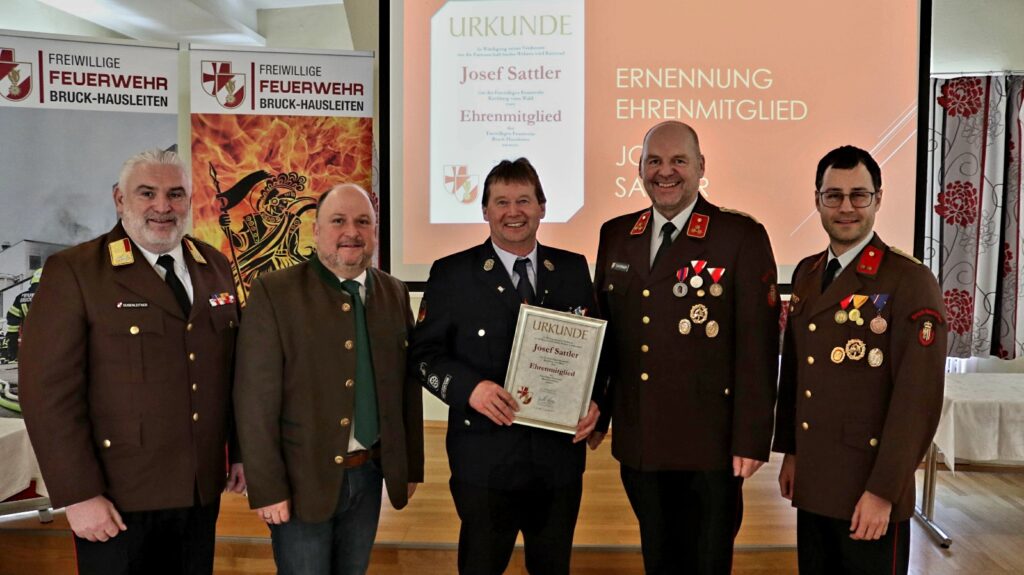 • Josef Sattler von der Partnerfeuerwehr Kirchberg vorm Wald (Deutschland) wurde zum Ehrenmitglied der FF Bruck-Hausleiten ernannt