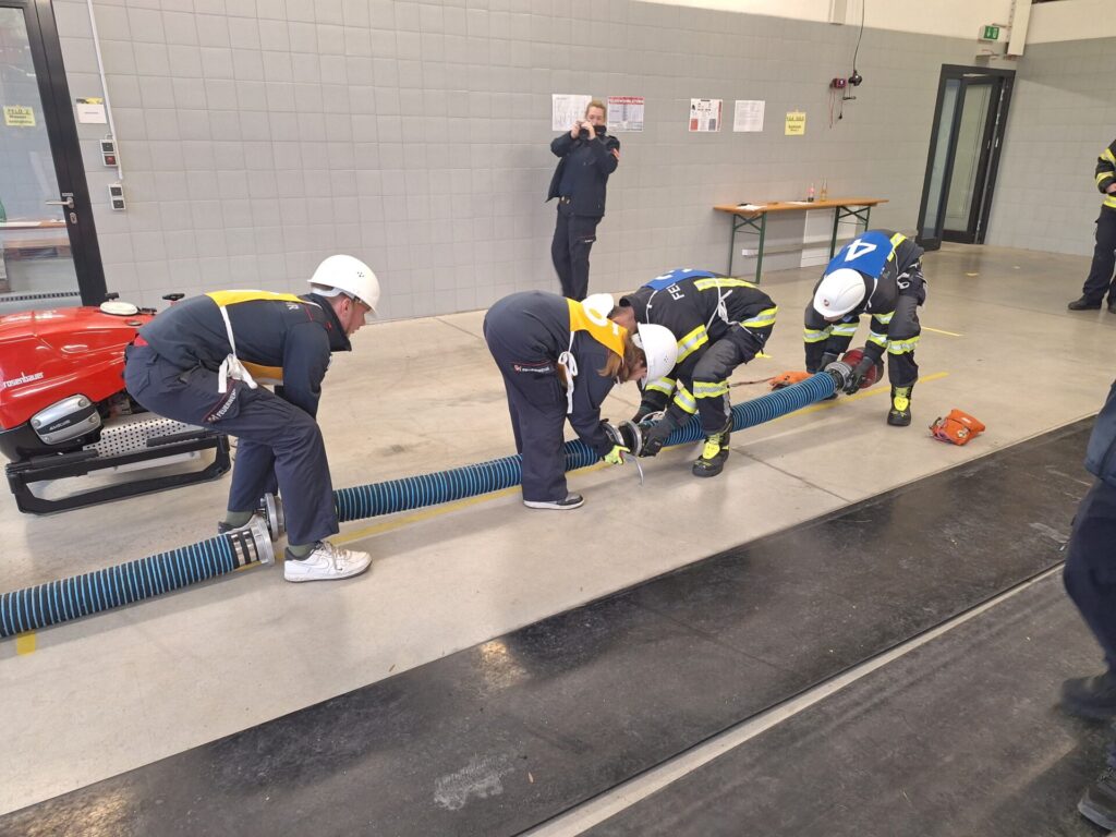 So mussten zwei Personen mithilfe technischer Einsatzmittel unter einem eingeklemmten Traktor hervorgeholt werden. Weiters steckten zwei weitere Verletzte in einer verrauchten Montagegrube fest. Mithilfe von Belüftung und technischem Feingefühl erfolgte jedoch auch hier eine erfolgreiche Rettung. Als eines der kniffeligeren Szenarien stellte sich das Retten einer bewusstlosen Person aus einer Schrottmulde heraus. Denn hier musste die verletzte Person mithilfe der Seilwinde der Teleskopmastbühne in einer Schleifkorbtrage aus der Mulde gehoben werden. Um das ganze abzurunden, war das vierte Szenario ein simulierter Küchenbrand im Übungsobjekt. Hier wurde eine Durchsuchung des Gebäudes und Rettung von vermissten Personen durch Atemschutztrupps der Feuerwehren vorgenommen. Des Weiteren wurde eine Wasserversorgung vom Feilbach mithilfe des Schlauchanhängers aufgebaut.